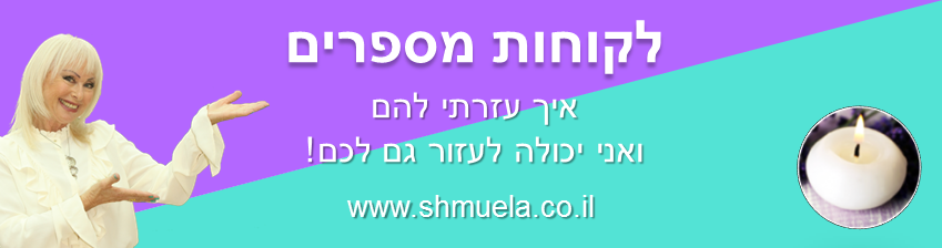 הגעתי לשמואלה מיואשת, והיא האירה לי את הדרך!  היא האמינה בי ונתנה לי את הכוח להאמין בעצמי! בדרך היו ירידות ועליות, שמואלה ידעה תמיד איך לעזור לי להתגבר. מצבי הנפשי והפיזי השתפר. אני מרגישה שהיא תמיד איתי".